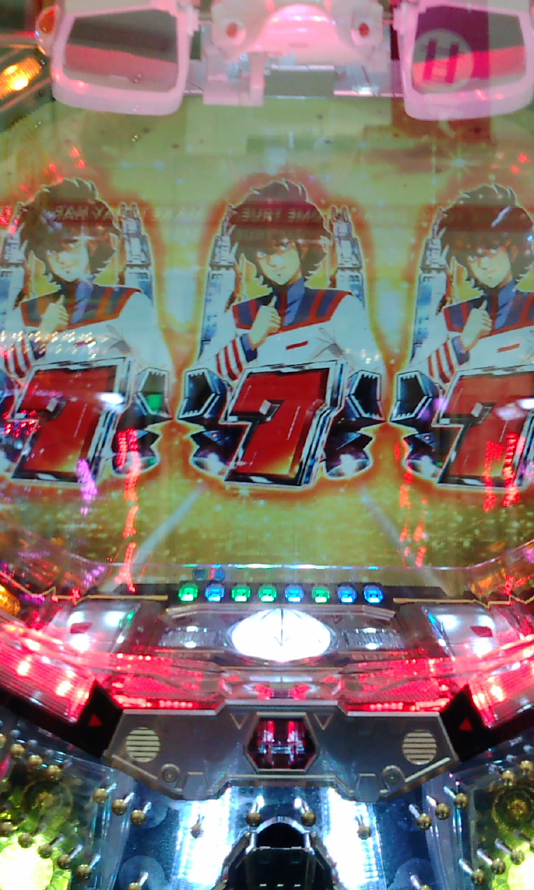 ナデシコで、ユリカステージ、全部青図柄で擬似4+サクラ柄枠中央SU4コスプレ+炎有りの8図柄テンパイ。擬似4なので、当然ナデシコリーチに発展し、カットイン強でハズレ……確かにダブルラインではなかったんですが、それでもショック。福本先生がこのときの僕を描いたら間違いなく、ぐにゃああ・・・・・・となっているはず。まあ、仕方ないんですけどね。ハズレりゃ激アツもノーマルハズレも等価値です。