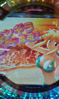 最初の動きは13回転目。夏休みモードから光武図柄になって、擬似2。足らんなあ……と、思ってたら、光武群。でも、擬似2だし……と、思ってたらスーパー発展時、光武落下でちょっと期待してみると、